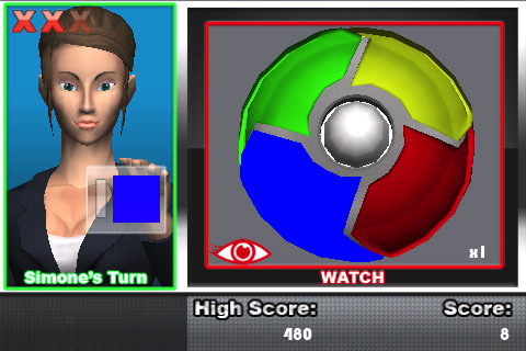 Nothing annoys Simone more than people who can't remember what day of the week it is. So expect to to hear a few unkind words when you make a mistake. Of course things won't be that simple. When the game board has rotated itself upside down and the colors have disappeared, will you be able to remember the pattern? Don't let Simone become a distraction.